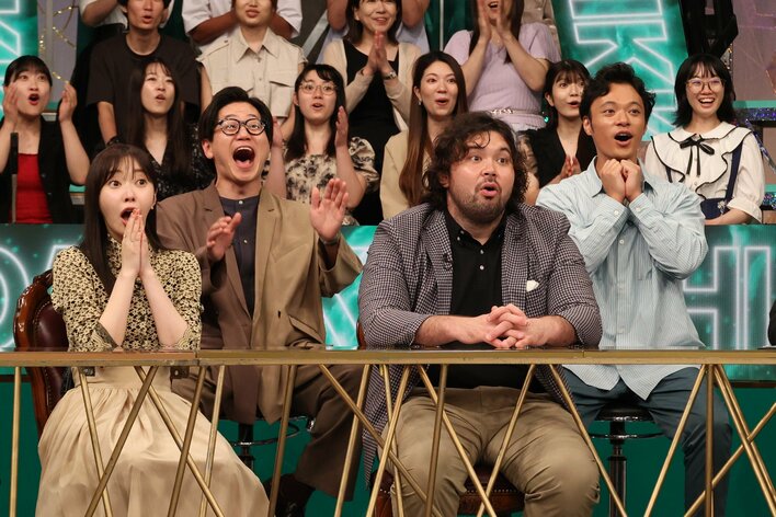 前列左から)風間俊介、福原遥、伊達みきお、富澤たけし、指原莉乃、ウルフアロン、伊藤利尋 後列左から)KiLa、山本浩司、関太、たける、ショーゴ