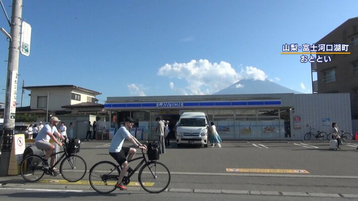 山梨『コンビニ富士山』の今…再び「幕」も高さ半分で効果なし 外国人観光客殺到で危険横断続く