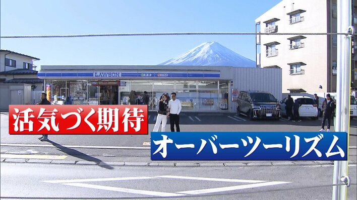 山梨『コンビニ富士山』の今…再び「幕」も高さ半分で効果なし 外国人観光客殺到で危険横断続く
