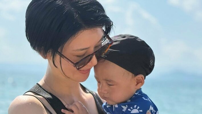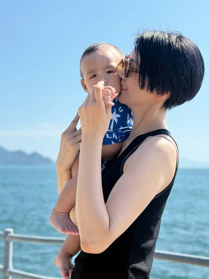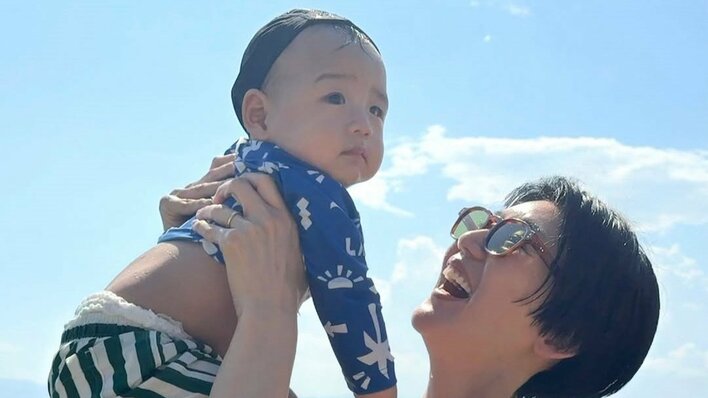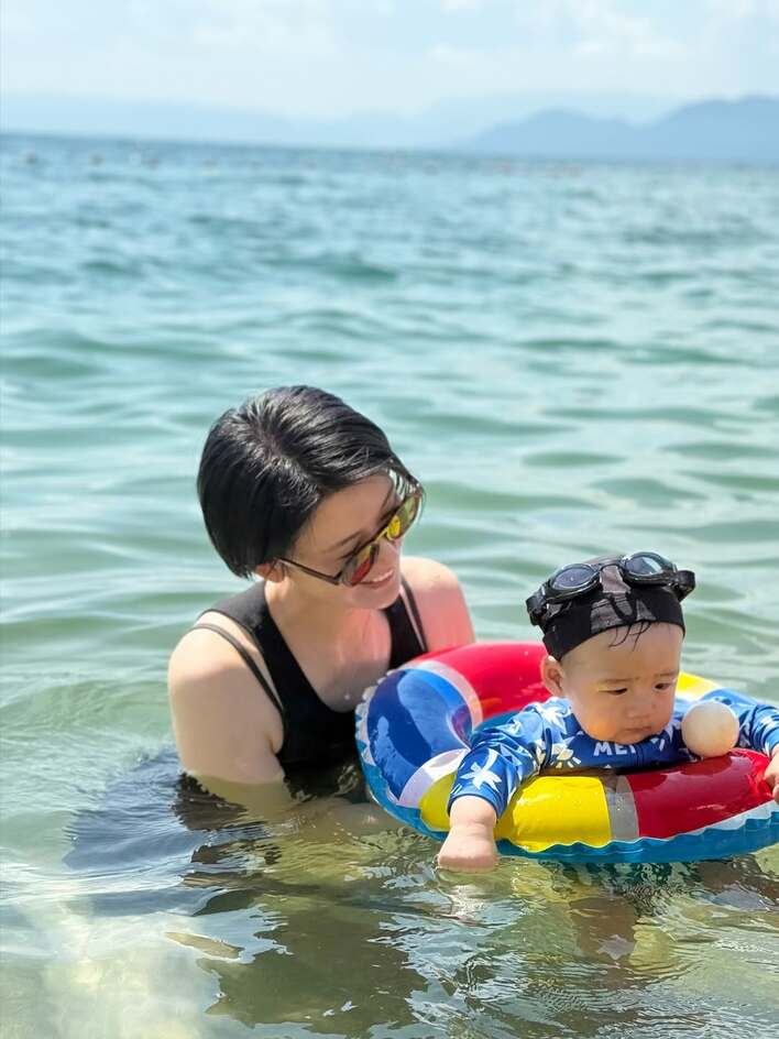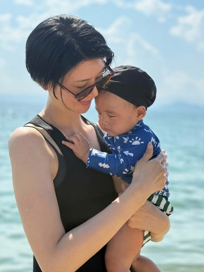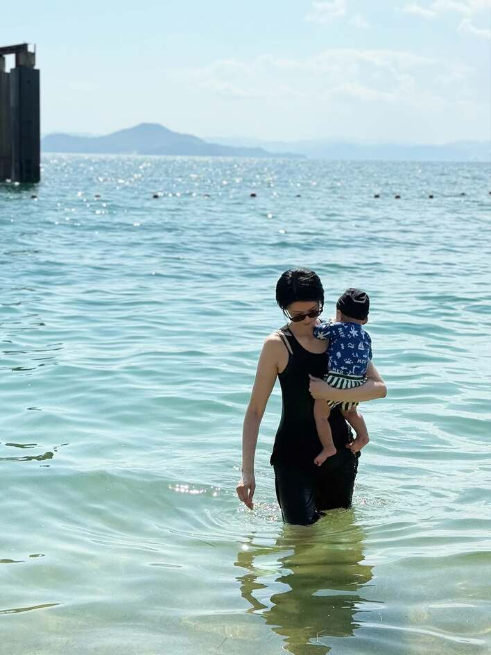 「なんとも美しい親子」栗原恵 0歳長男の浮遊ショット披露!海を満喫する親子に「可愛すぎる癒しちゃん」と反響