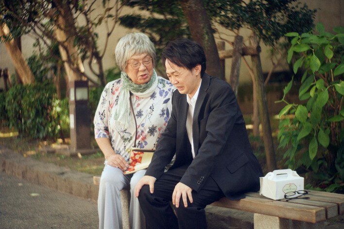 左から)日向松子(梅沢富美男)、佐々木広治(酒井貴浩)