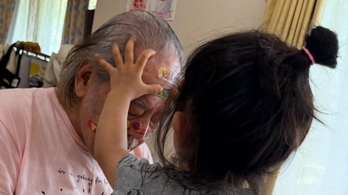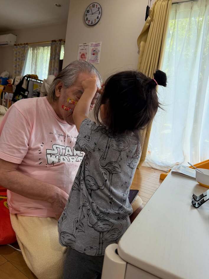 丸山桂里奈 2歳娘に“されるがまま”のおじいちゃんを公開!「おもちゃになってます」アンパンマン絆創膏で愛情表現「やだぁ〜可愛すぎる」