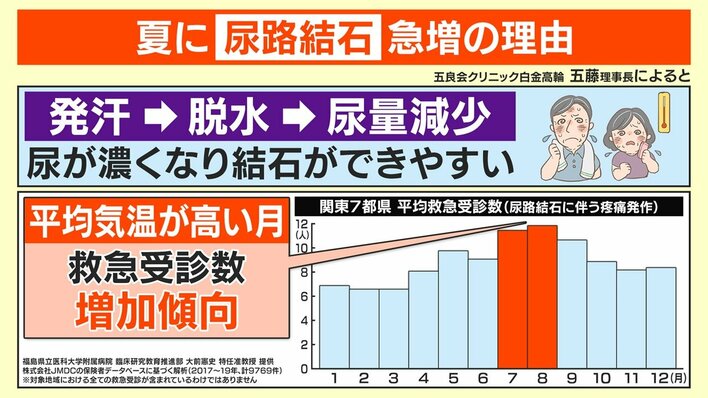 【注意】猛暑で「尿路結石」の患者が急増!理由は“脱水” 谷原章介も3年前に体験「背中がずしんと重くなりしくしくと痛みが」