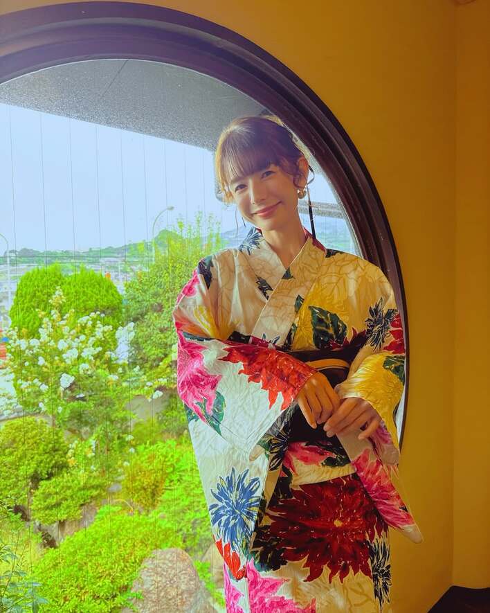 「一段と女将感が」スザンヌ 自身の旅館で浴衣姿を披露!鮮やかな花柄に茶色の帯を締めた清涼感溢れるショットに「素敵すぎ」