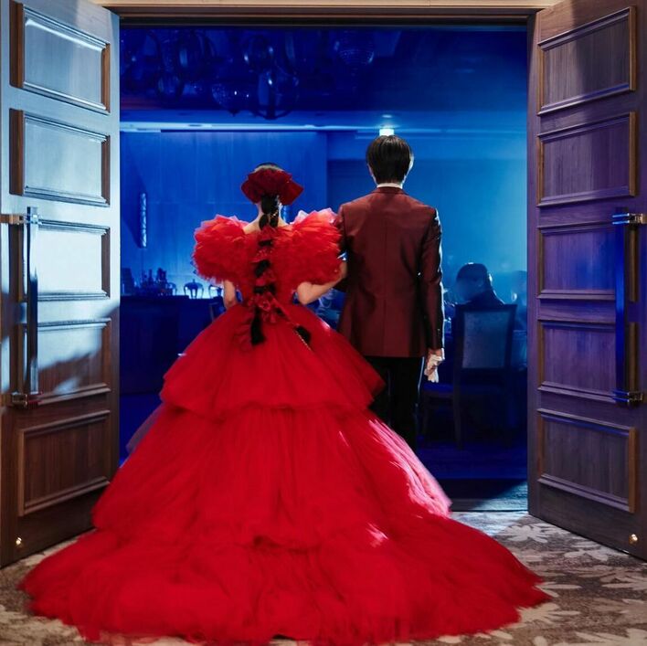 人気YouTuber・タナカガ 夫との結婚式ハグショットを公開!幸せな2人を見守る人物は…赤と白のドレス姿を披露