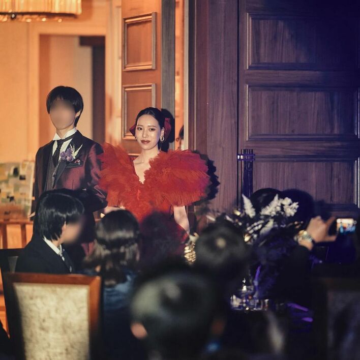人気YouTuber・タナカガ 夫との結婚式ハグショットを公開!幸せな2人を見守る人物は…赤と白のドレス姿を披露