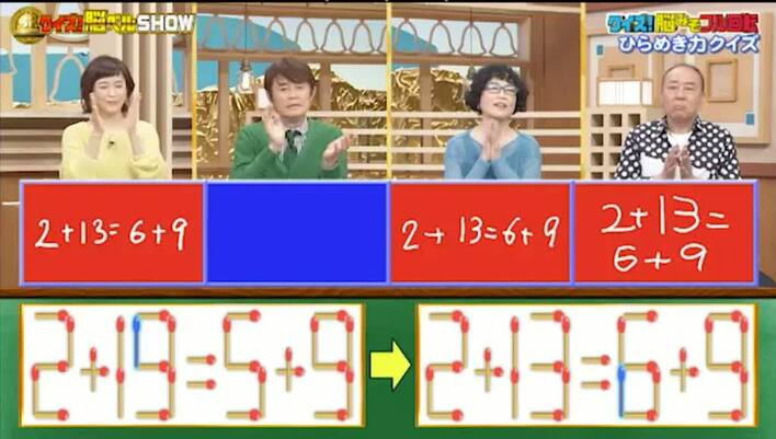 <『脳ベルSHOW』クイズ>式を成立させるために動かすべきマッチはどれ?
