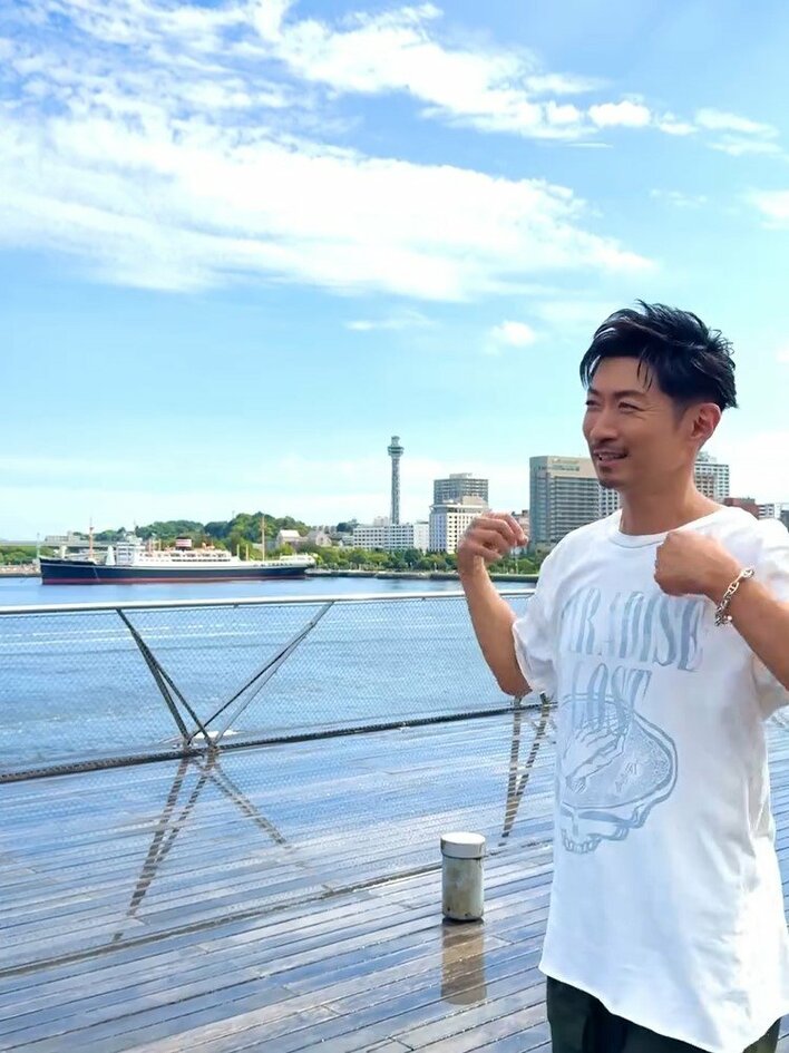 EXILE MAKIDAI(49) 横浜の海を背に爽やかショット披露!まぶしい笑顔にファン歓喜「キラキラすぎる」「いくつになってもかっこいい」