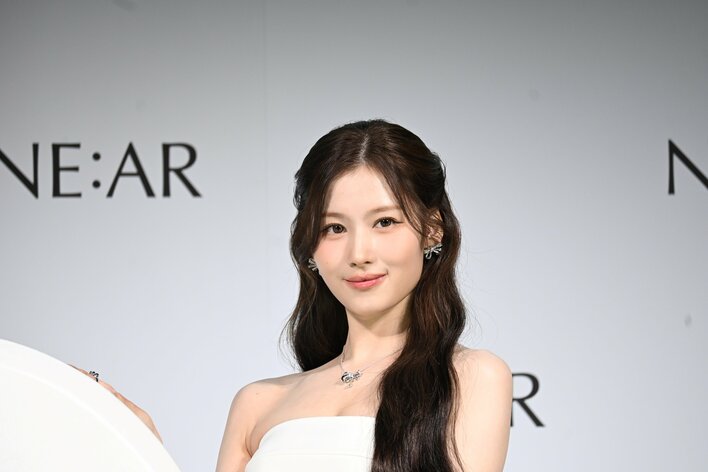 TWICE・サナ タイトなミニ丈の白ドレスで美脚を披露!最近は“イチゴジャムパン”に夢中 スタイル維持法は?『NE:AR(ニアル)』ブランド説明会に登場