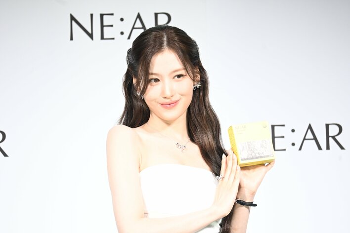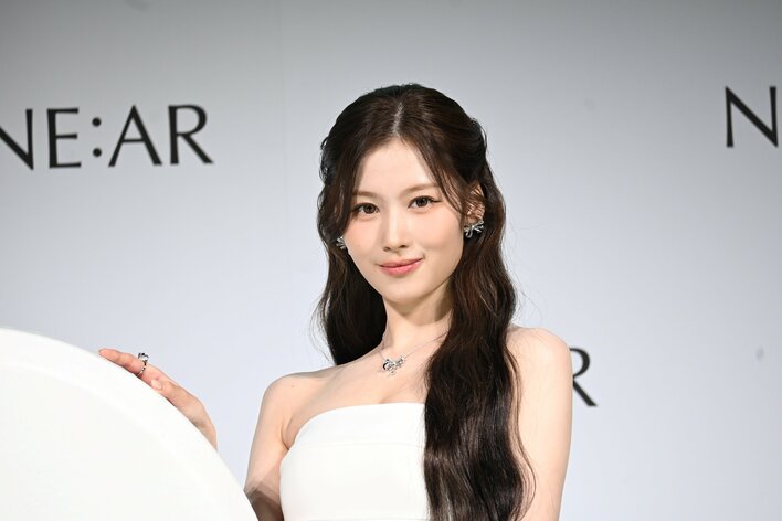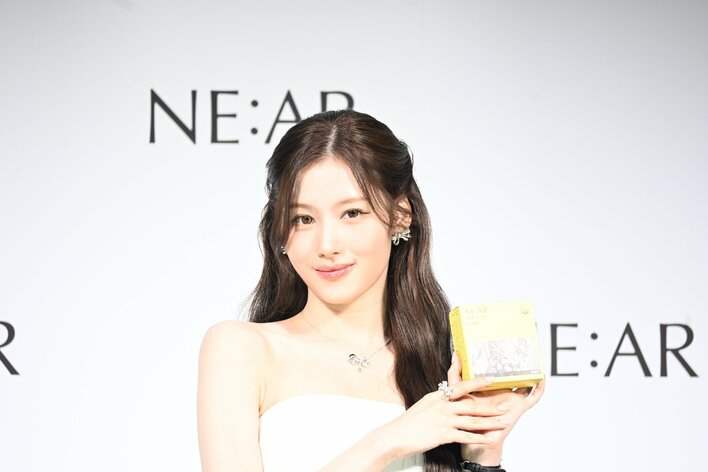 TWICE・サナ タイトなミニ丈の白ドレスで美脚を披露!最近は“イチゴジャムパン”に夢中 スタイル維持法は?『NE:AR(ニアル)』ブランド説明会に登場