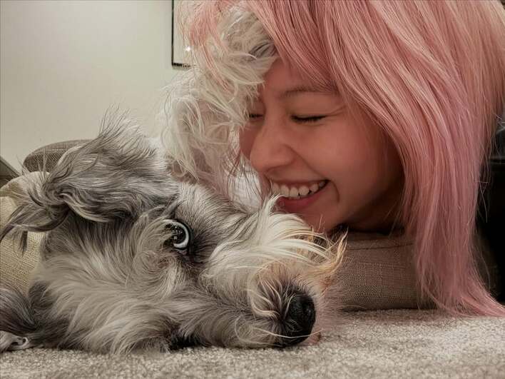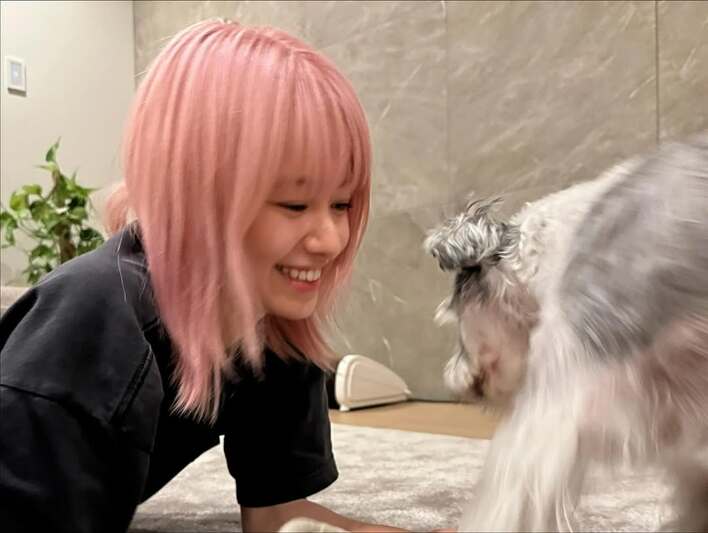 「義兄宅ですか!」山本舞香 ピンク髪のイメチェン姿でわんこに顔寄せショット公開!「Takaのワンワンに似てると思ったら」