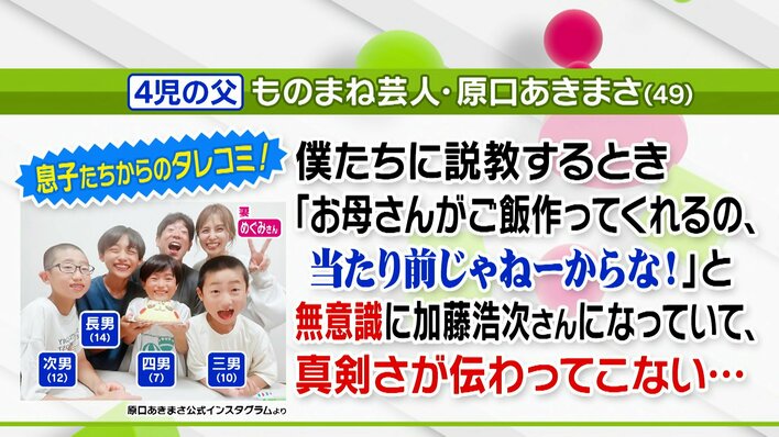4児の父・原口あきまさ 説教中にも“ものまね”が出てしまう職業病に息子たちが「家ではものまねをしなくて大丈夫だよ」と気遣い