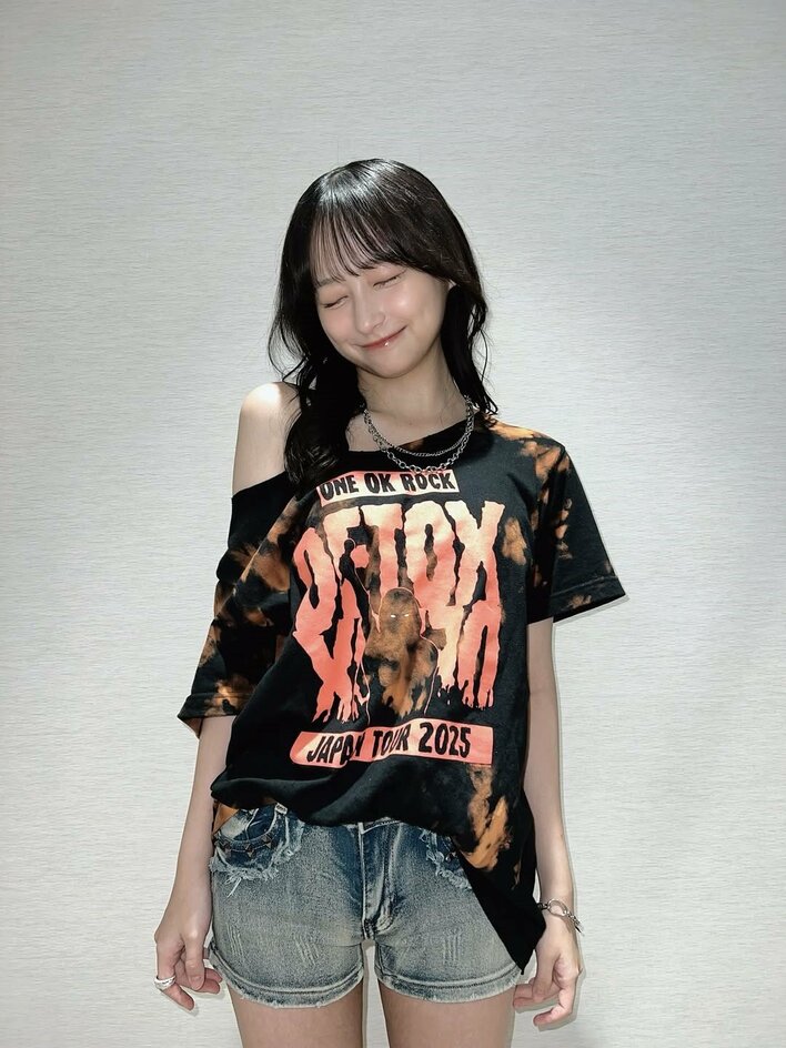 影山優佳 ワンオクのライブTを肩出しスタイルに大胆アレンジ!脱色などセンス光るデザインに「天才すぎる」「めちゃくちゃ似合ってる」