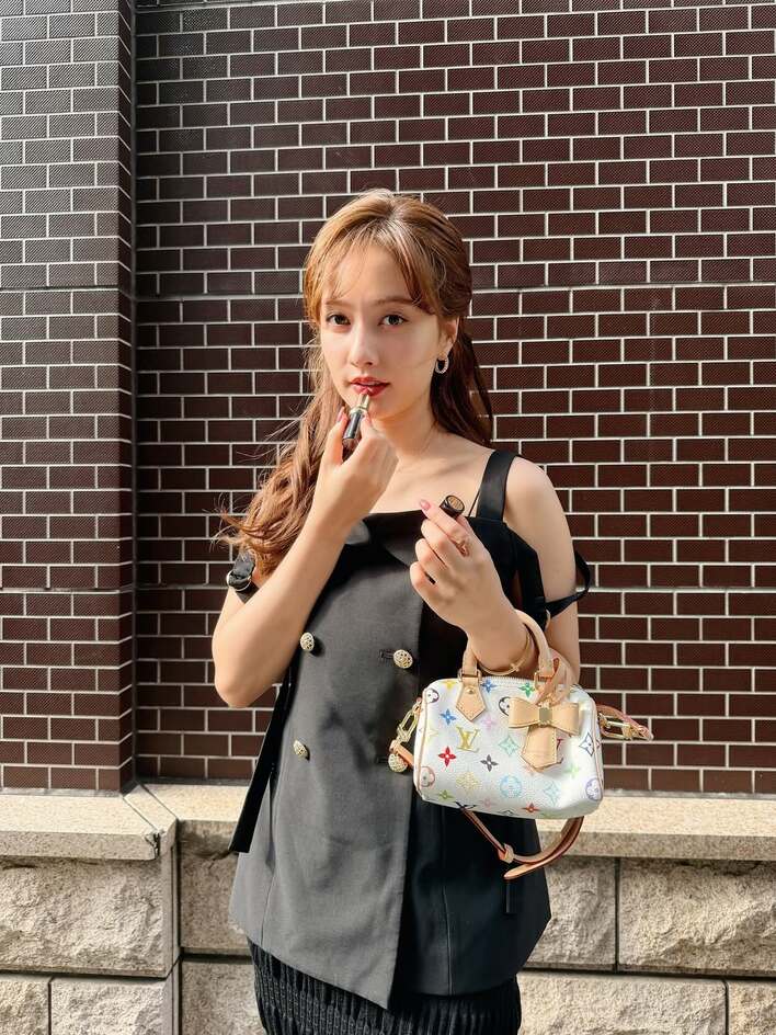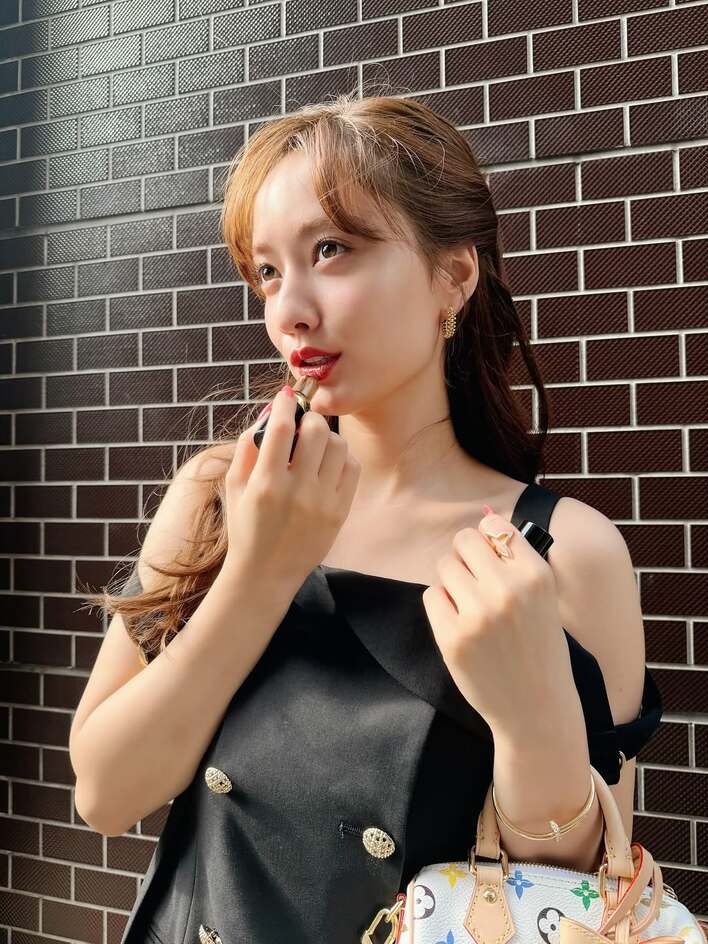 谷まりあ 口紅を塗る色っぽショットを公開!デコルテ際立つ黒コーデでほほ笑む姿に「仕草がたまらない!」とファン悶絶