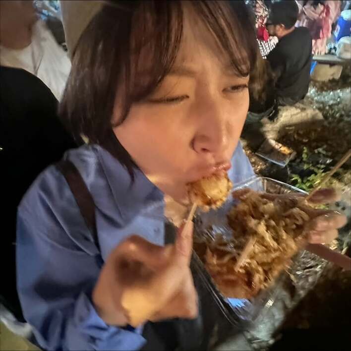 「爆食いさすが!」丸山礼 アツアツたこ焼き頬張り格闘する3コマ写真公開!お祭りで臨場感のあるブレたショットやにっこり表情のご機嫌な姿も
