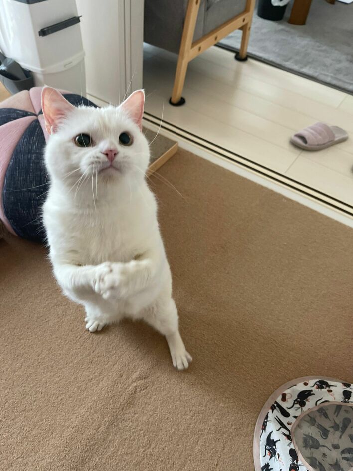 おねだりポーズをするしらたまくん 提供:月としらたま
