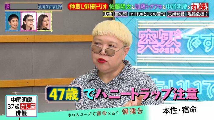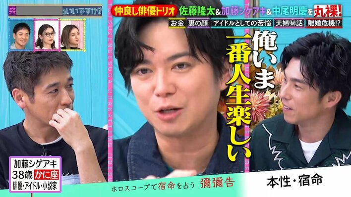 佐藤隆太「自分でも怖かった」妄想がふくらみ大号泣!加藤シゲアキ「60歳を人生のピークに」、中尾明慶の“超人的な体力”にスタジオ仰天!