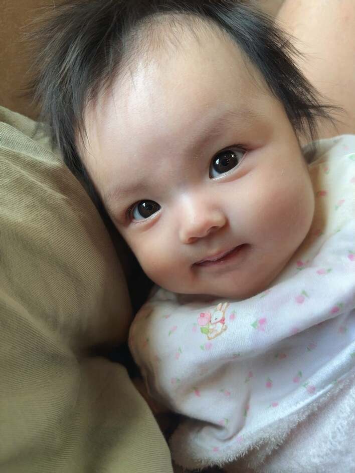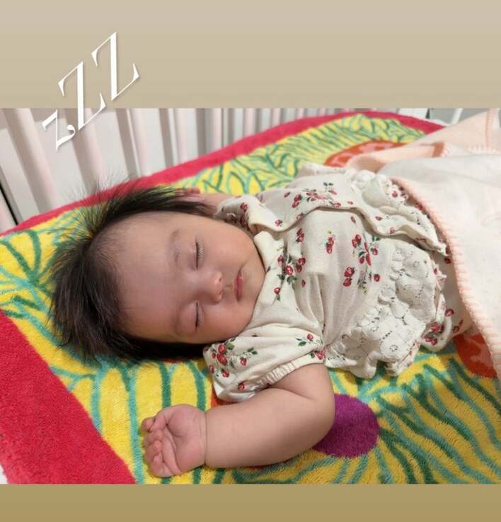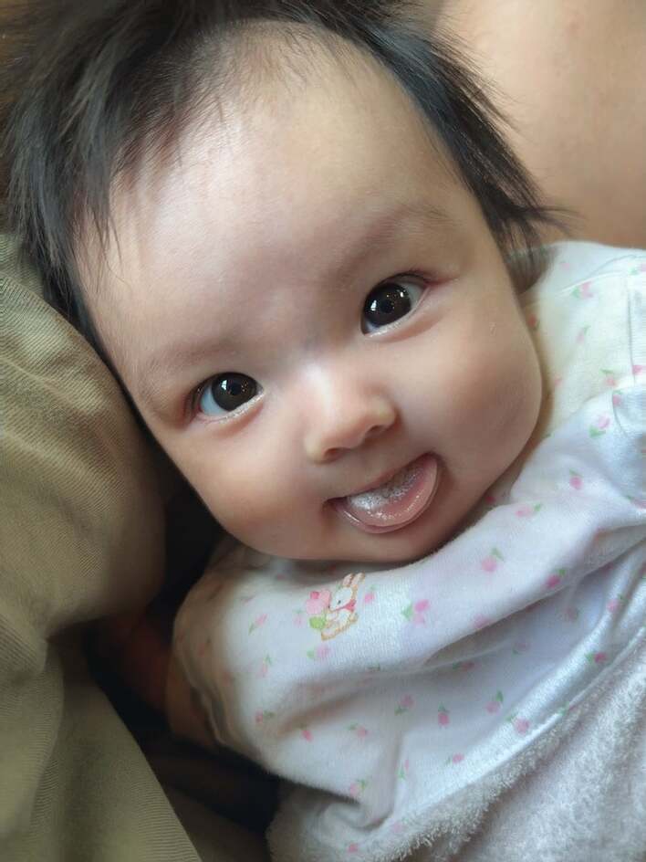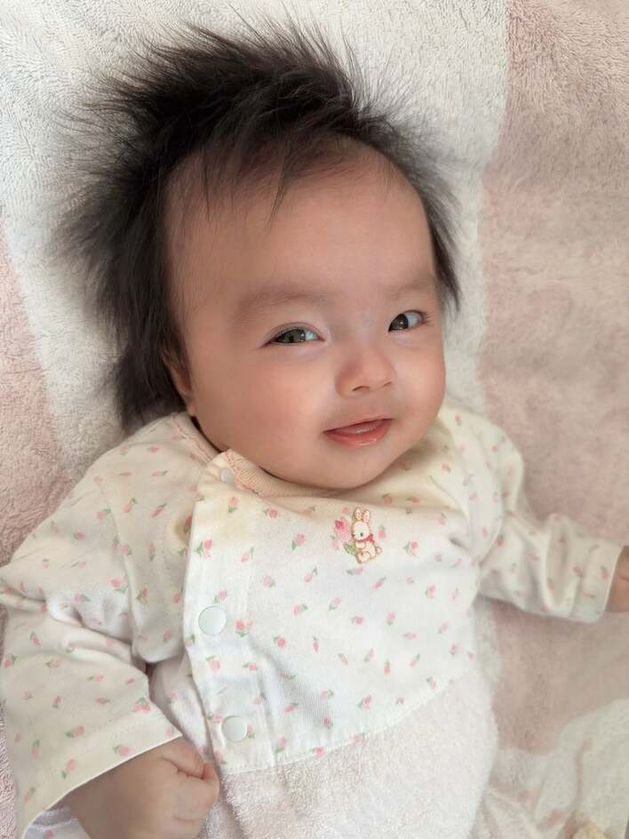 舌を「ベー」川崎希の夫・アレクサンダー 生後3カ月次女のいたずらっ子な姿公開!コロコロと変わる表情に「天使」「可愛い姫」