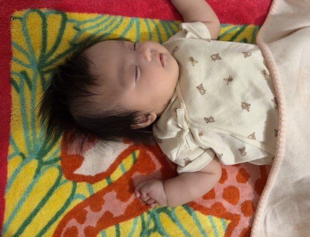 川崎希 “おさがりエルメス”の上で眠る生後3ヵ月次女の寝顔ショット公開!バンザイポーズで気持ち良さそうな表情にほっこり