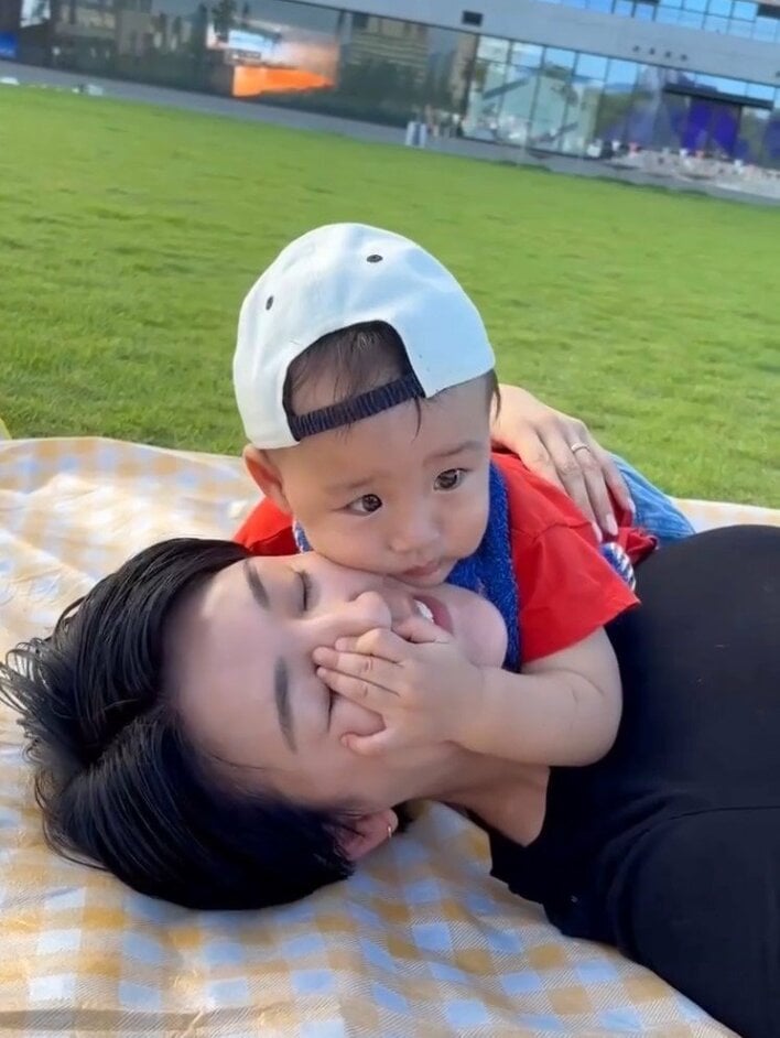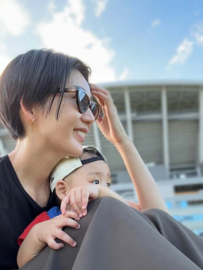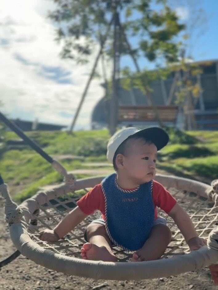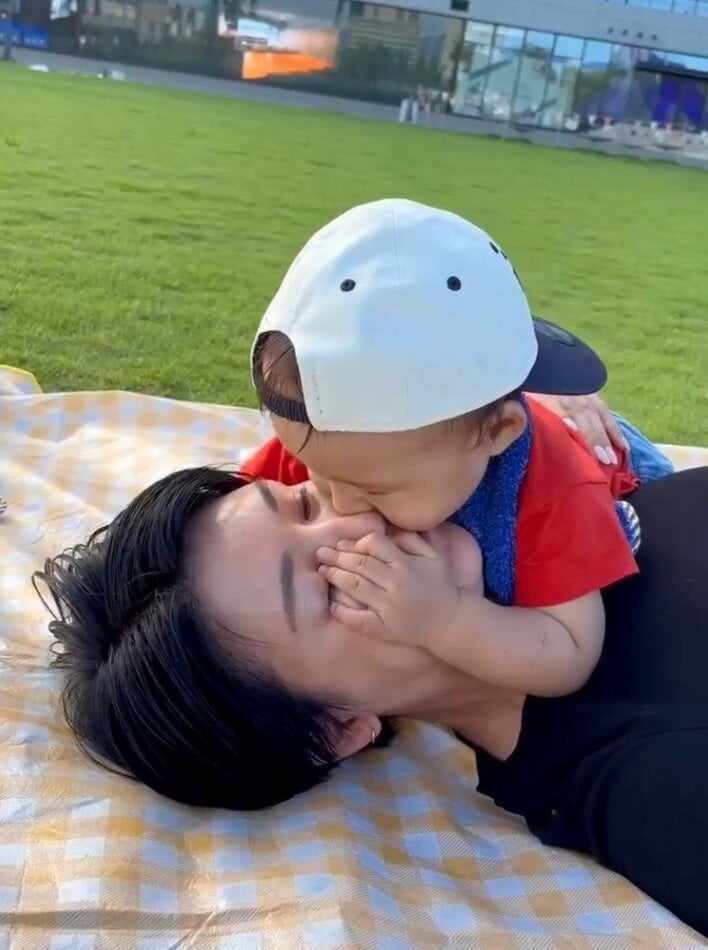 栗原恵 0歳長男から熱烈チュー!「ラブラブ攻撃最高過ぎ」広大な芝生の上をハイハイする姿などピクニック日和を満喫