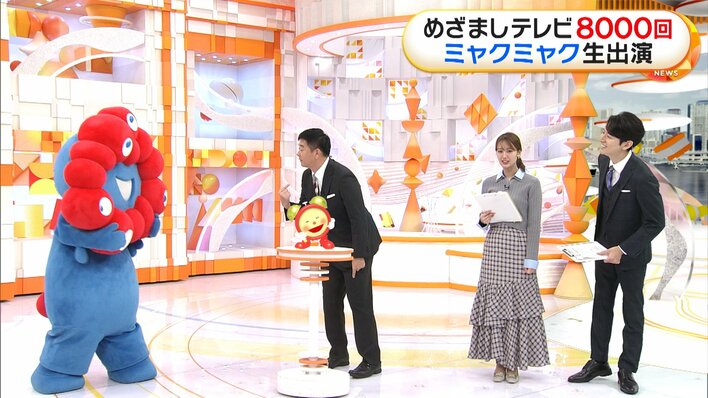 ミャクミャクが『めざましテレビ』に生出演!放送8000回の記念日に「めざましじゃんけん」やお天気コーナーに参加 大阪・関西万博の感謝を伝える