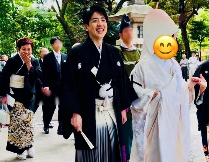 「笑顔がそっくり」大竹しのぶ 長男の結婚式での親子ツーショット公開!和装姿の夫婦の後ろでほほ笑むおちゃめな姿に「なんだかほっこり」