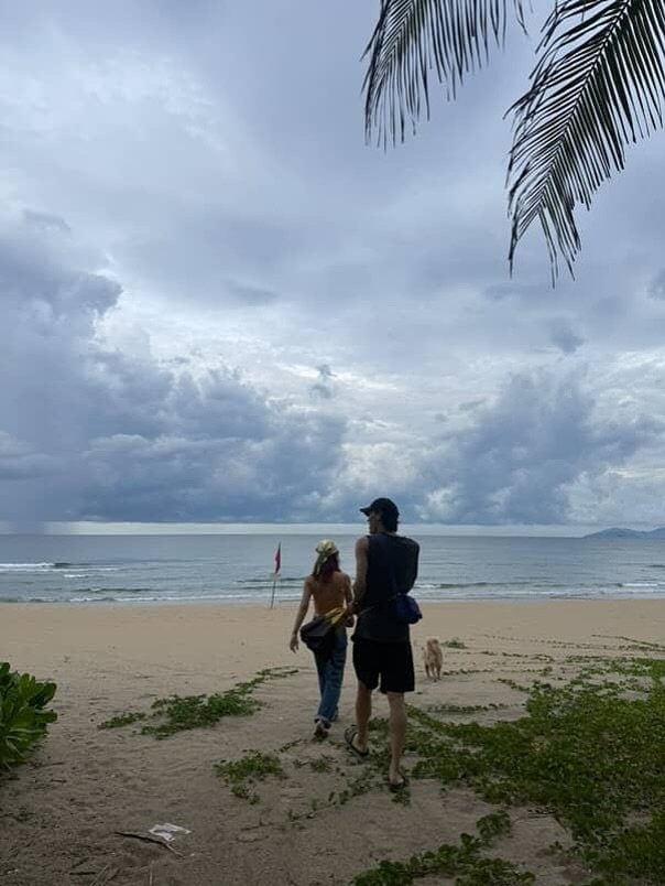 村上佳菜子 水着姿で引き締まった美スタイル披露!夫&愛犬とダナンの海辺を歩く絵画のようなオシャレ写真も公開