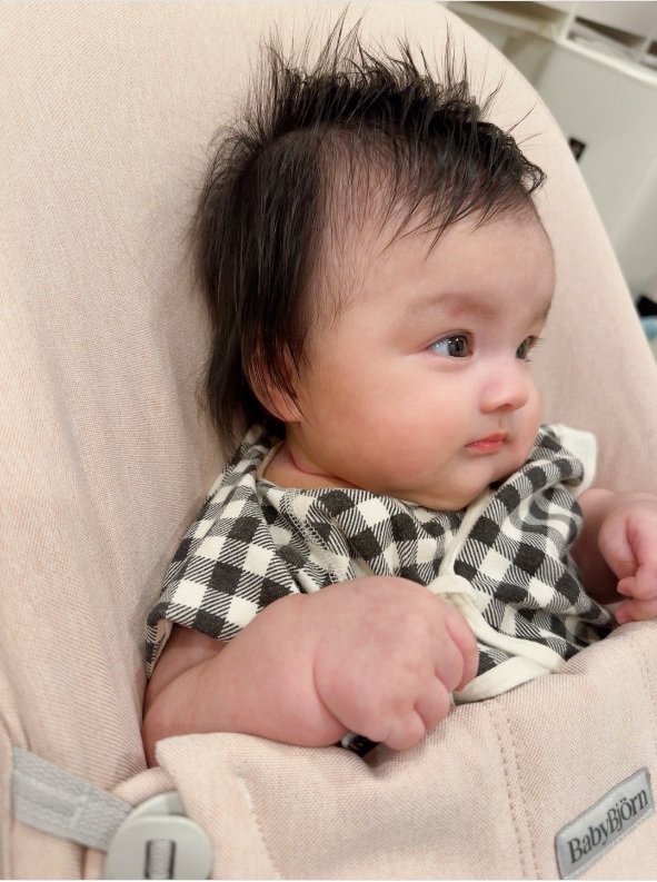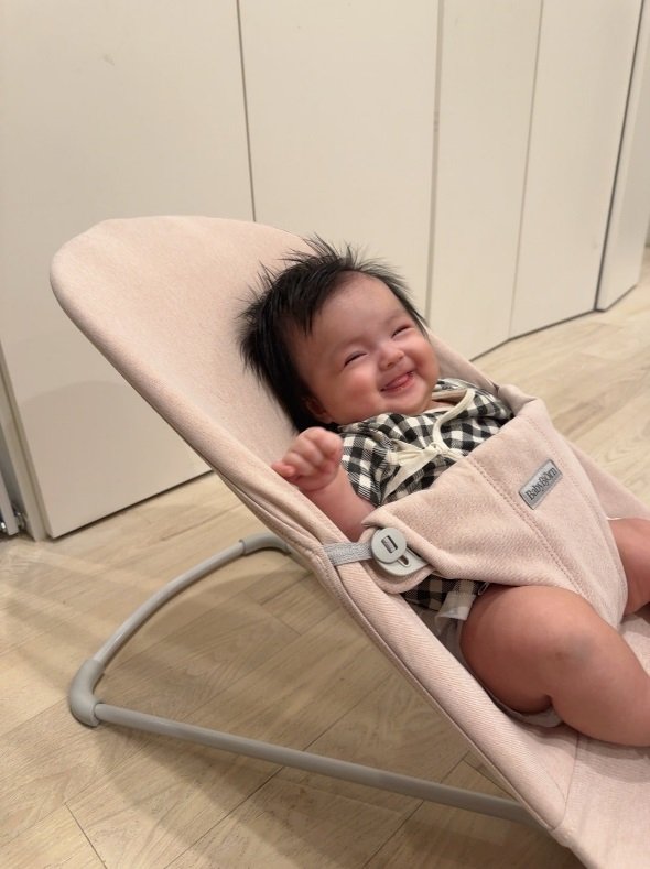 川崎希 生後3ヵ月次女がキラキラ笑顔でバウンサーデビュー!さらに「泣いちゃったけど」初の予防接種で見せたきょとん顔にもキュン♡