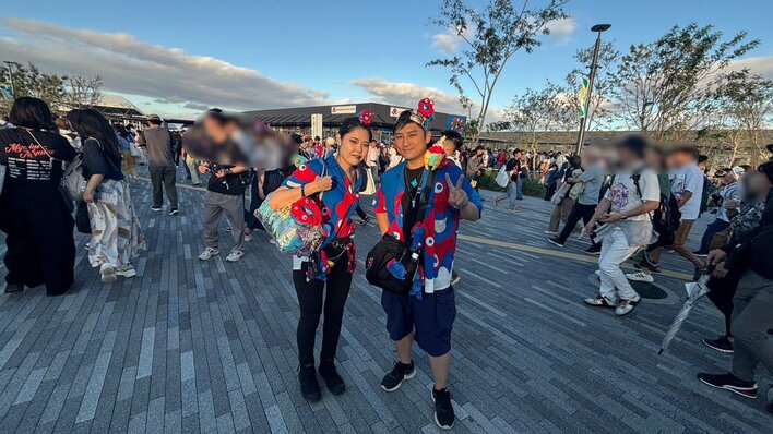 「ミャクミャクにお祝いしてもらった」万博デート重ね結婚した新婚夫婦に遭遇!おそろい全身ミャクミャクコーデで満喫【万博最終日ドキュメント】