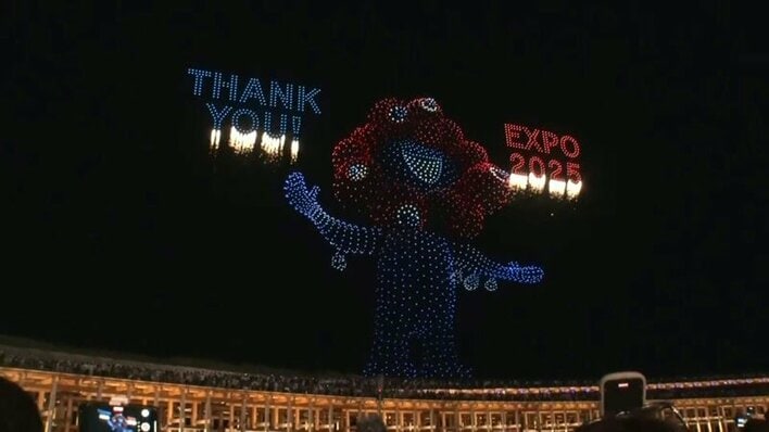 ミャクミャク空から感謝とお別れの挨拶「みんなは万博楽しかった?ミャクミャクもすっごく楽しかったよ!」ドローンショー後にサプライズ【万博最終日ドキュメント】