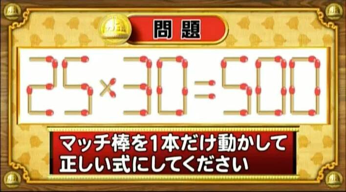 <『脳ベルSHOW』クイズ>式を成立させるために動かすべきマッチはどれ?