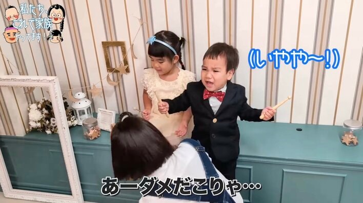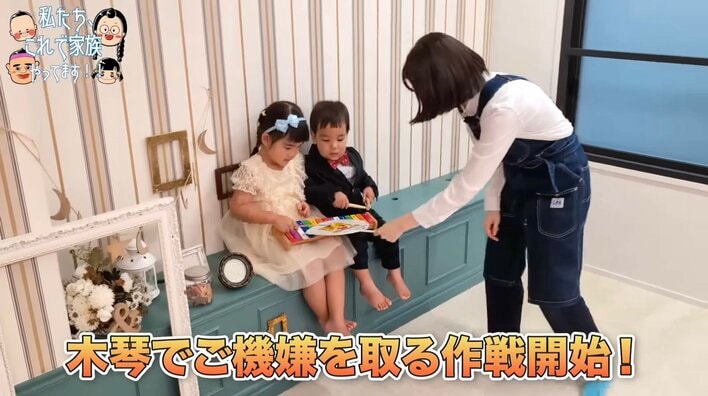 「可愛くお育ちに」たんぽぽ白鳥 4歳娘&2歳息子の記念撮影で大人たちがバタバタ!?必死にあやして撮影したほっこり家族写真に「二人の成長が楽しみ」