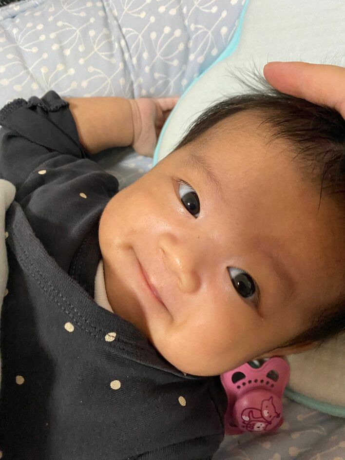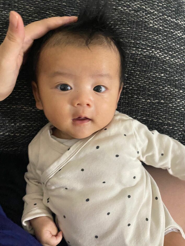 病院に行く前の笑顔のかなたくん 提供:@kanata__baby