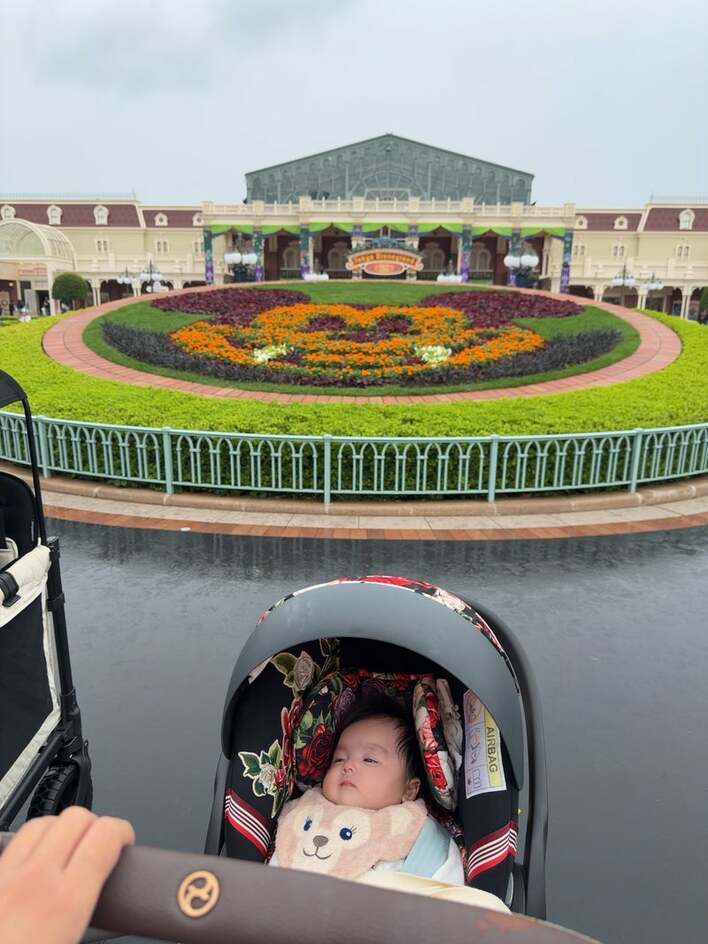 川崎希 生後3ヵ月次女がディズニーデビュー!シェリーメイのスタイを付けた姿や夫・アレクサンダーに抱っこされる姿も「やっぱり特別な一日」