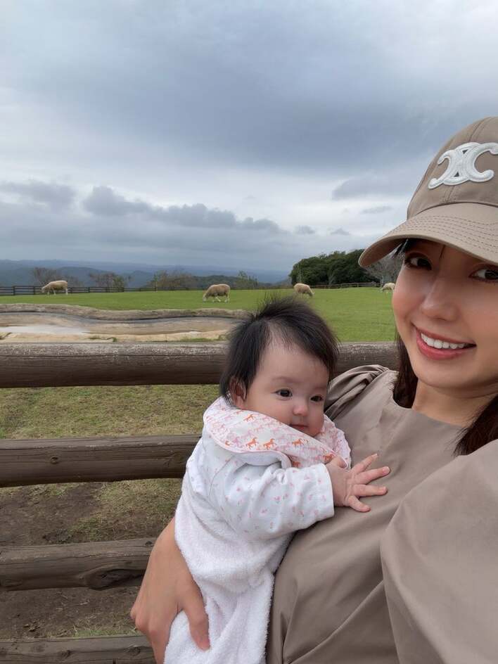 川崎希 生後3ヵ月次女の「クリオネみたい」なほっこり寝姿を公開!羊にえさやりや迷路ゲームなど牧場&遊園地で遊ぶ子供たちの姿も