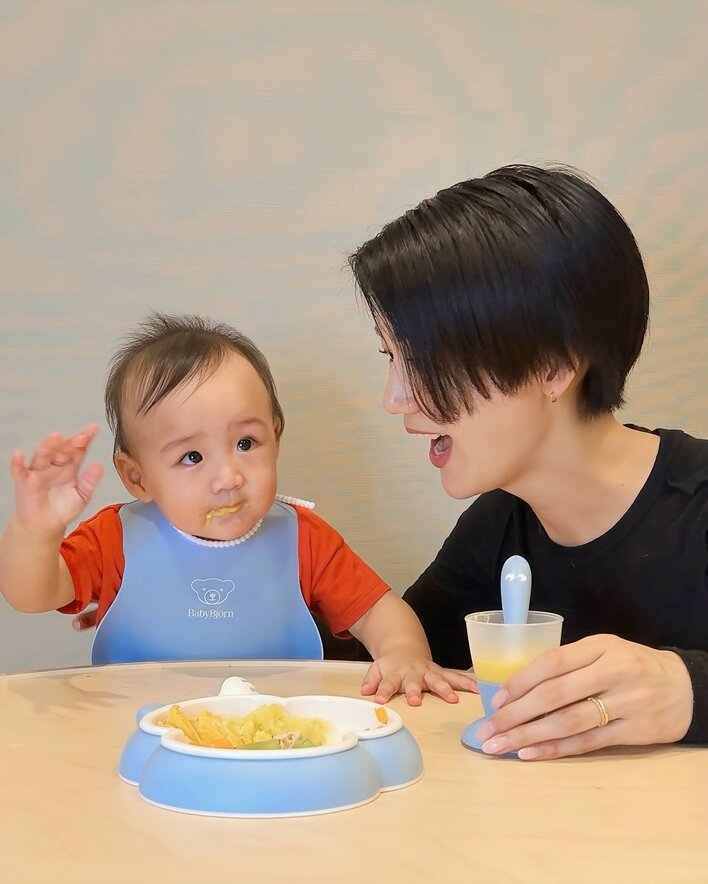 「目元がママ似」栗原恵 0歳長男のもぐもぐショットを公開!一生懸命にご飯を口に運ぶわんぱく食事タイムに「癒やされます」「かわいすぎ」