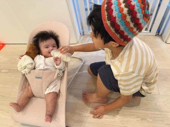 川崎希の夫・アレクサンダー 生後3カ月次女を長男&長女がお世話する姿を公開!癒やし満点のほっこりきょうだいショット