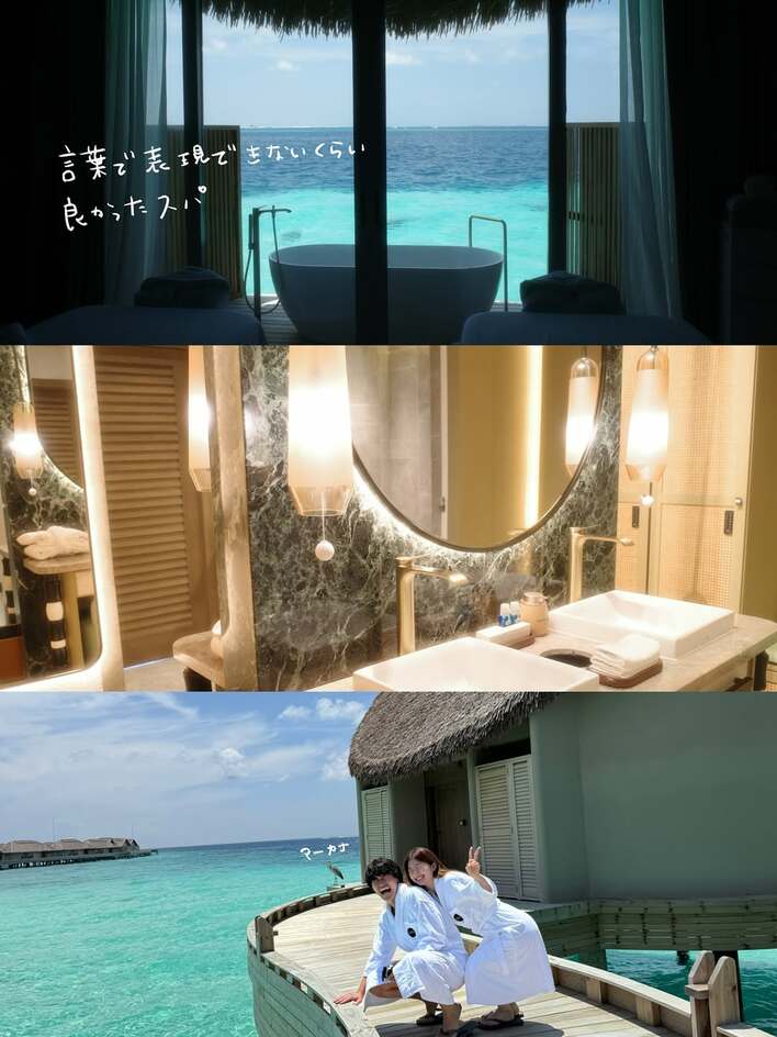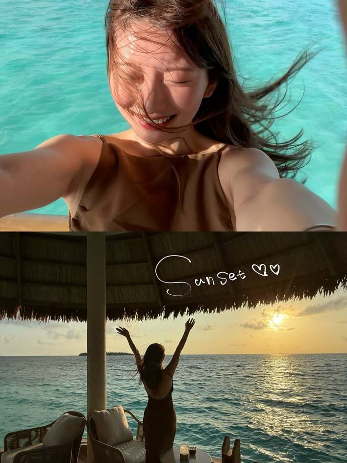 「全部いい写真すぎ」華金カップル モルディブでの“新婚旅行”を満喫!透明感あふれる海をバックに水着姿やぴったり寄り添うラブラブ姿も