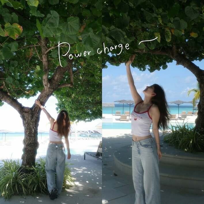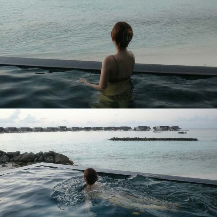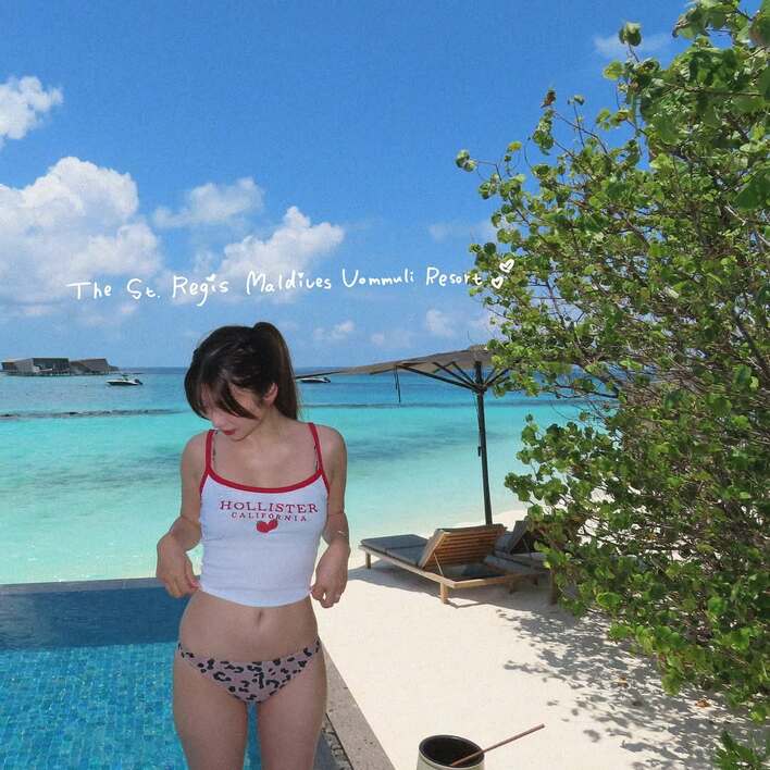 「全部いい写真すぎ」華金カップル モルディブでの“新婚旅行”を満喫!透明感あふれる海をバックに水着姿やぴったり寄り添うラブラブ姿も
