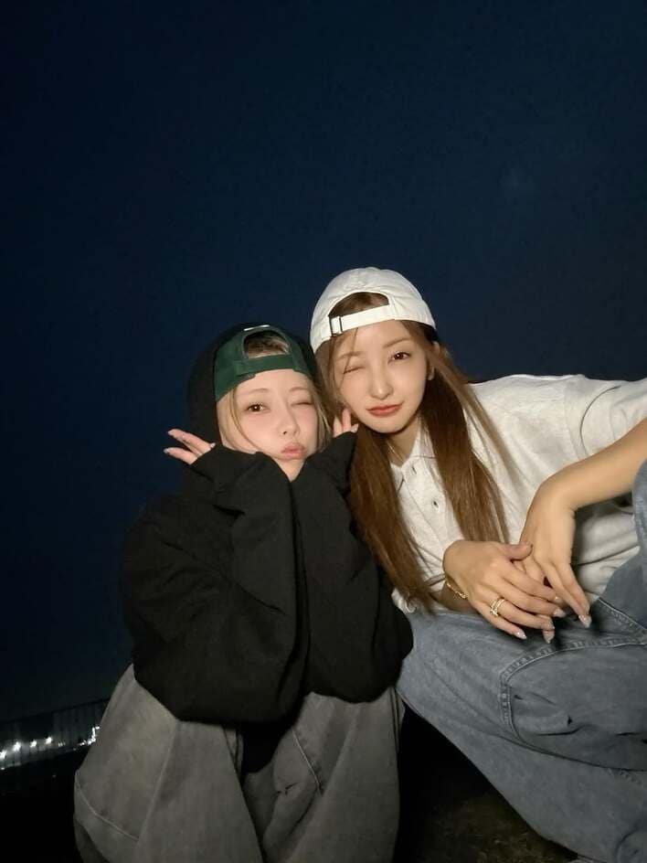 「意外な組み合わせ」板野友美 重盛さと美と“舌出し&裏ピース”!ギャルっぽさあふれるストリートコーデでの密着ショットに「推しと推しのコラボ」