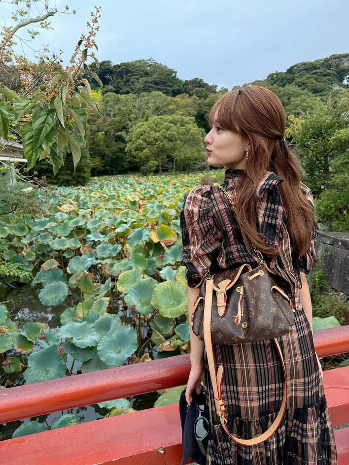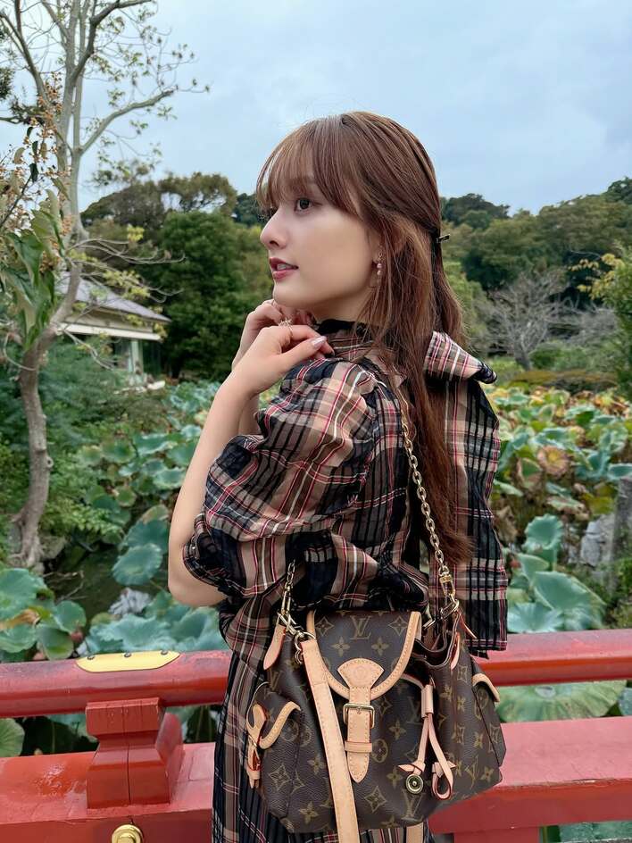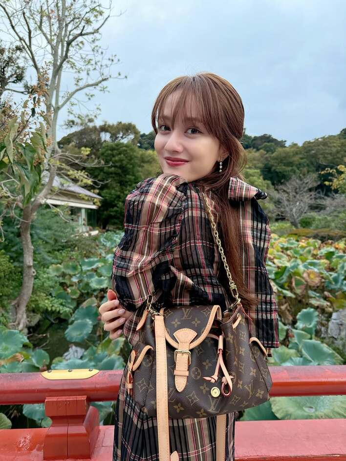 「大人の魅力」谷まりあ 口をキュッととがらせた“愛嬌ショット”を披露!秋香るチェック柄コーデでお出かけ満喫「天使」「笑顔に癒された」