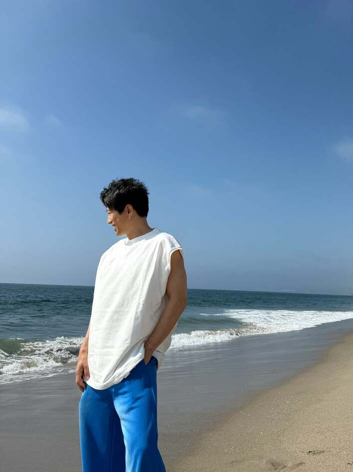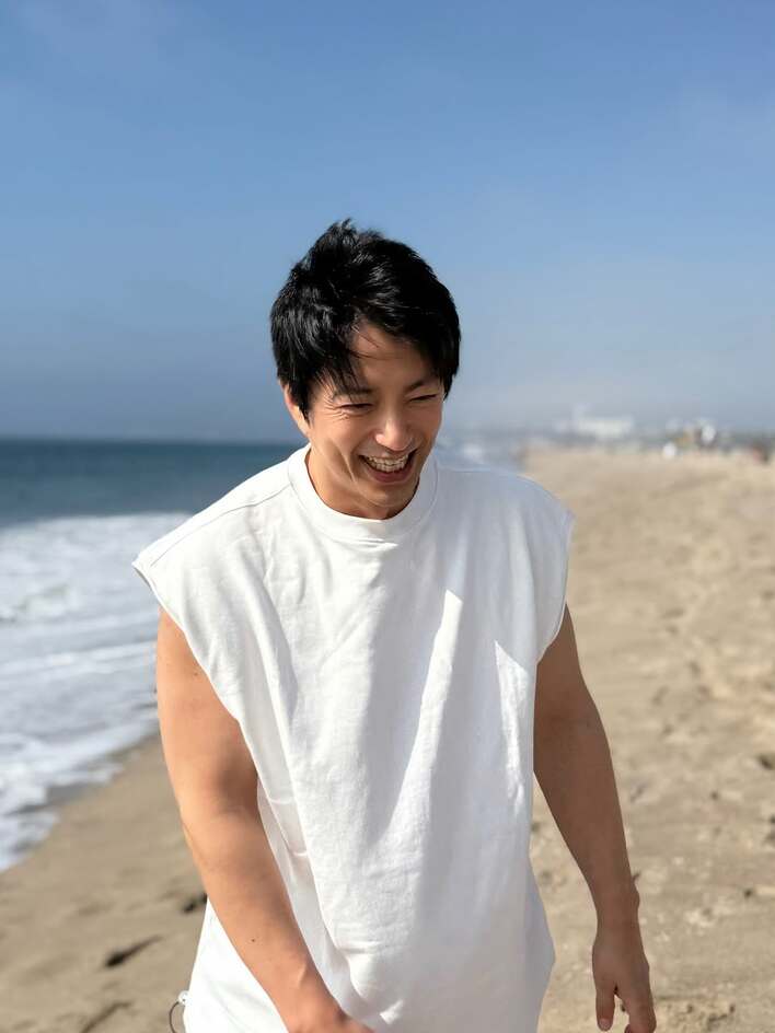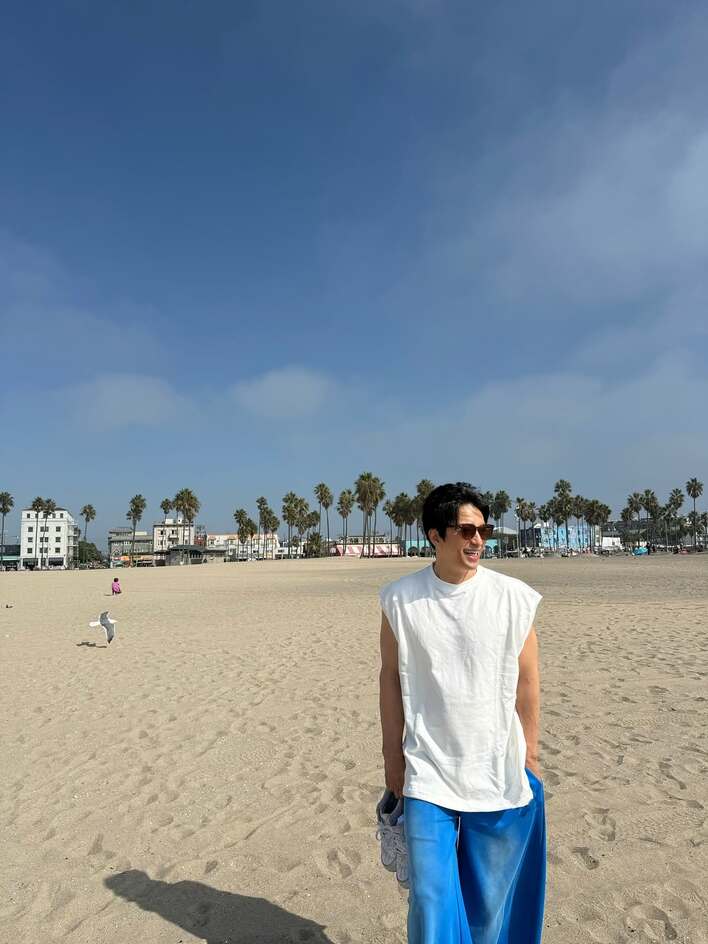 大沢たかお まぶしい笑顔の爽やか海辺ショット公開!「仕事の疲れも吹き飛ぶ」「デートしてるみたい」