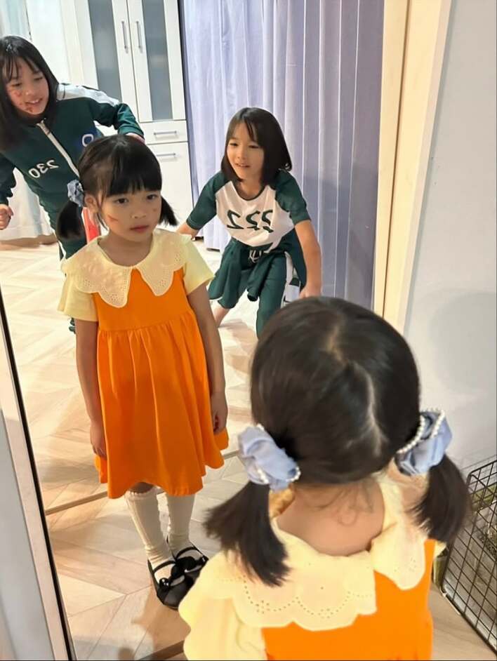 話題の子役・倉田瑛茉 姉2人との“イカゲーム仮装”ショットに「姉妹そっくりすぎ」と反響!全力“だるまさんがころんだ”を披露し「超可愛くて最強三姉妹」