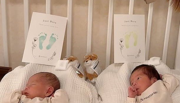 双子のお顔はこれが最後!中川翔子 産後ケアホテルでのショット公開「いつかお食い初め行けたら…」キュートな足形や豪華食事も披露