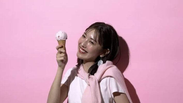 小澤陽子アナ フェミニン衣装&アイス使用の撮影で「“ピンクな部分”が出せたのかな」