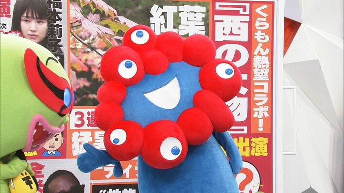 【初共演】2025年大阪・関西万博まであと半年!ミャクミャクとくらもん 告知をかけて“片足跳び対決”