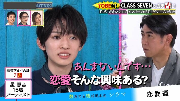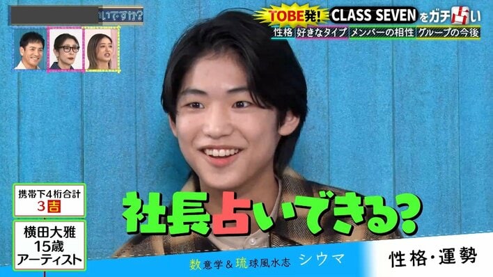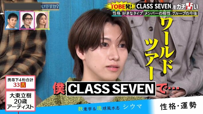 CLASS SEVEN 大東立樹&近藤大海の相性に黄信号!?「和を乱す可能性が…」髙野秀侑には“一番モテる”鑑定「色気が抜群」