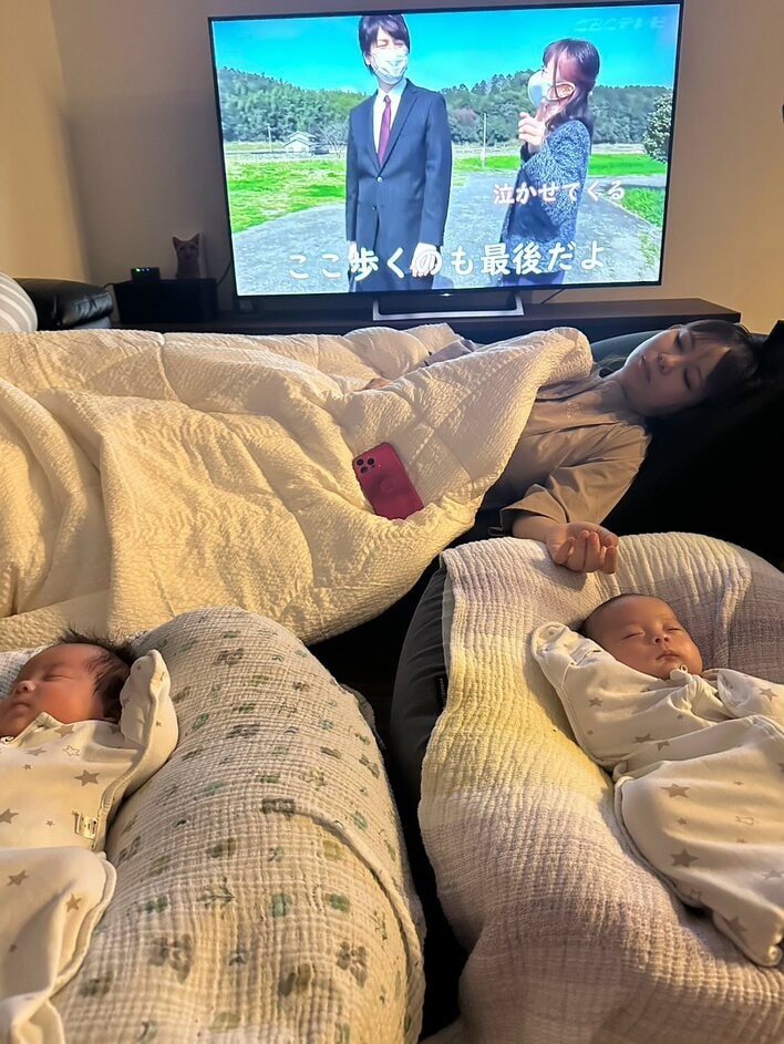 「毎回面白すぎ」中川翔子 生後1ヵ月双子の個性的すぎな寝相公開!天使や大仏ポーズなど披露した弟に「声出して笑った」「将来有望だわ!」