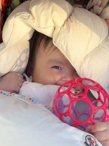 川崎希 “3代目のおくるみ”に包まれた生後4ヵ月次女を披露!頭まですっぽりと隠れた居心地抜群の笑顔にキュン「新品みたいに綺麗」