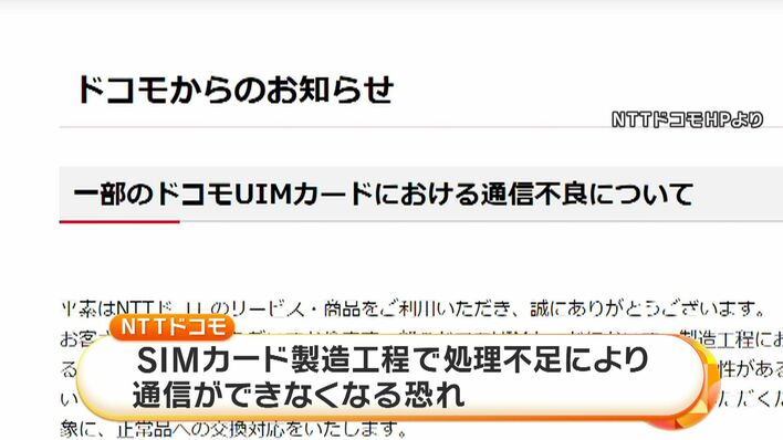 NTTドコモ 約93万枚のSIMカードが通信不良の恐れ 正常に使用できていても将来的に通信不良の可能性…